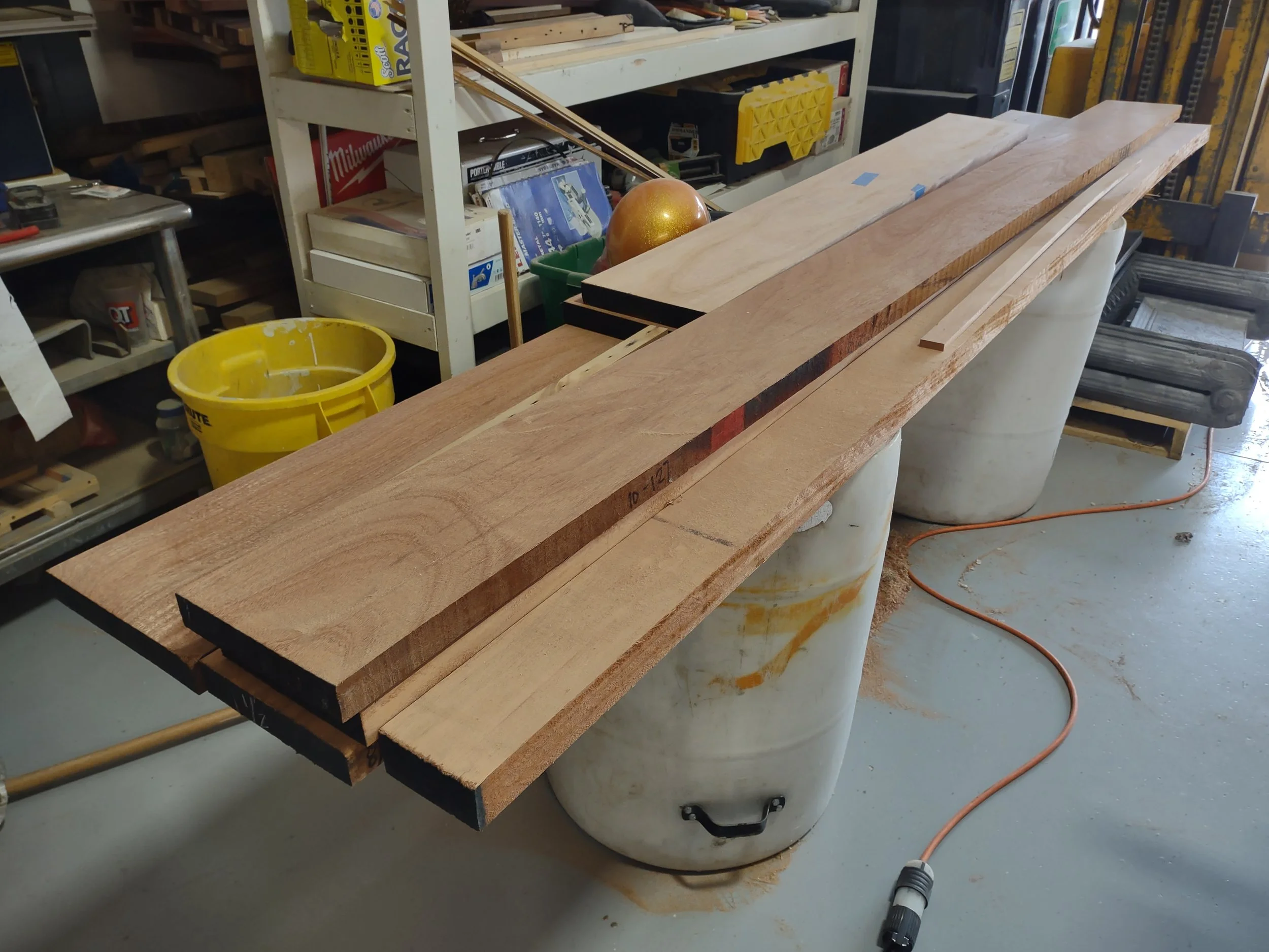 It begins with rough lumber. African mahogany here.