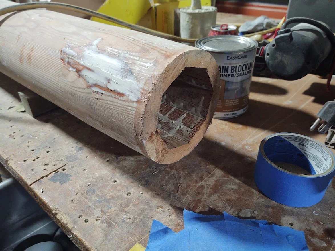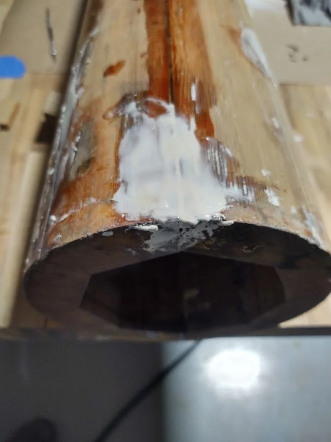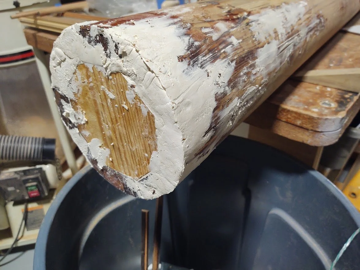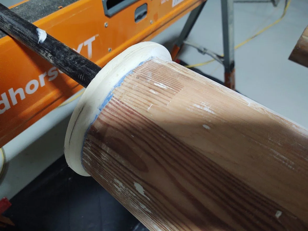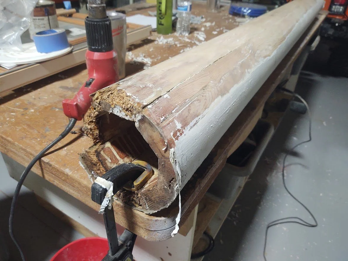 Abatron, a two part architectural epoxy, was applied in numerous layers to build back the missing wood.