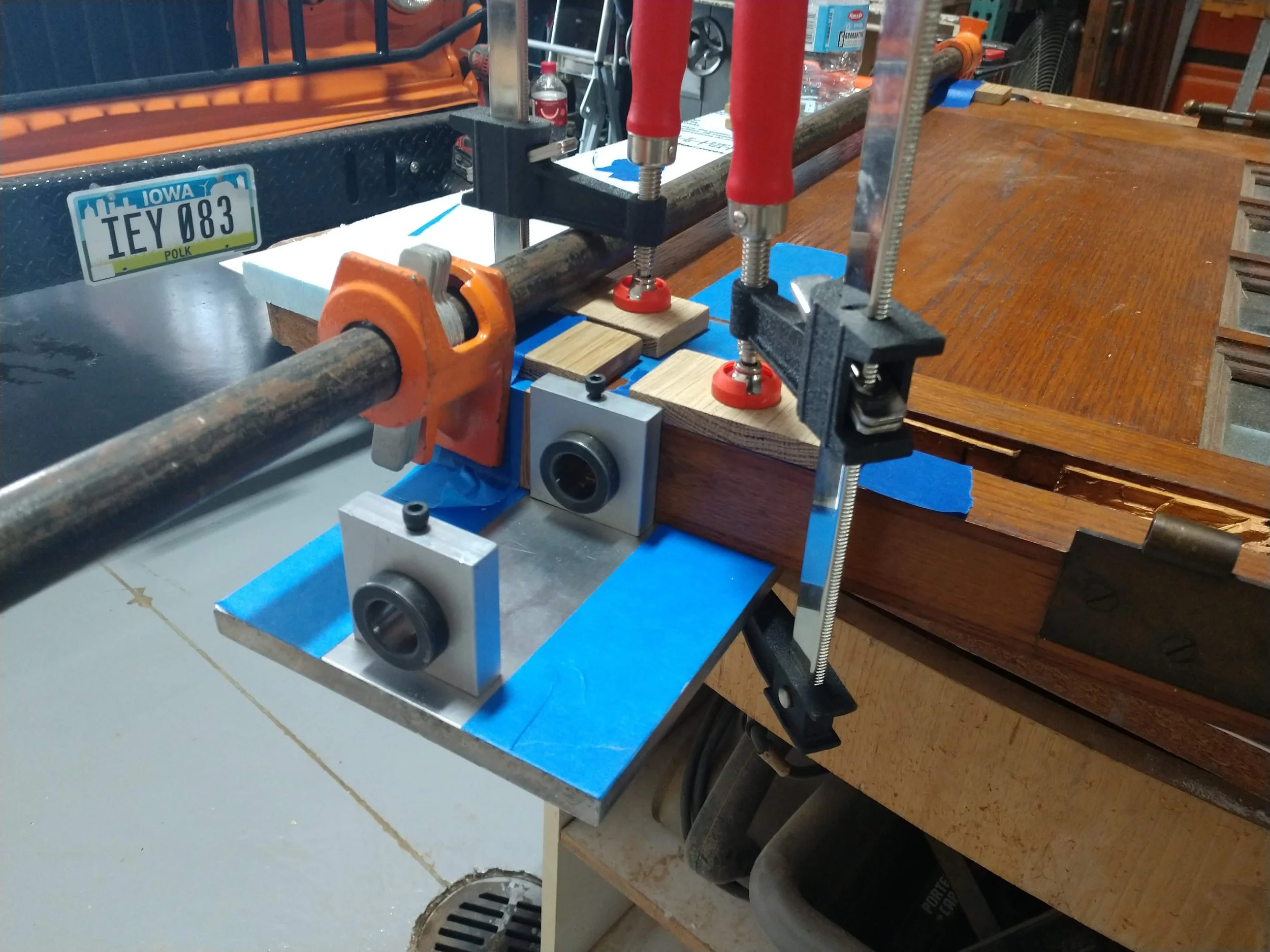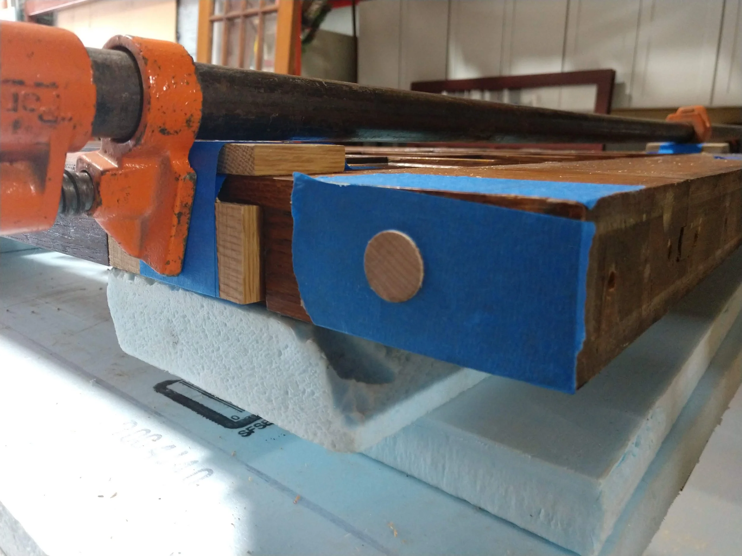 With the dowel pins in place, clamping pulled the rails and styles together .